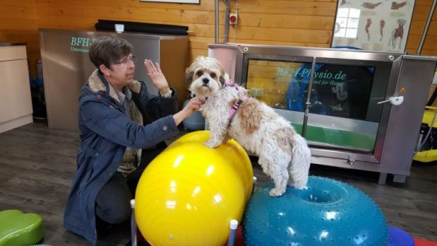 Stabilisationstraining der Hinterhand und Rücken.